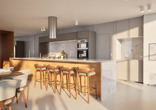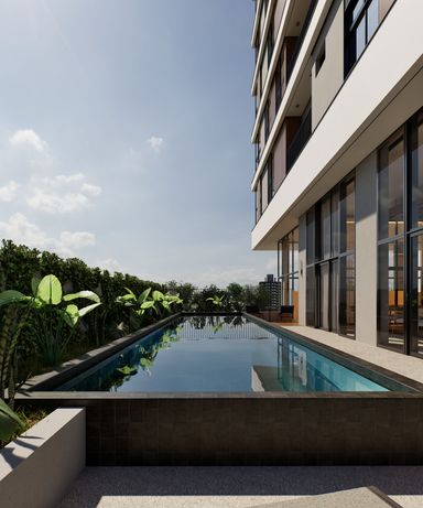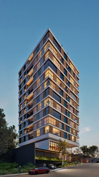Edifício com 11 pavimentos, apenas 2 apartamentos por andar, fachada ventilada com brises móveis em alumínio e soluções arquitetônicas que priorizam conforto térmico, iluminação natural e privacidade