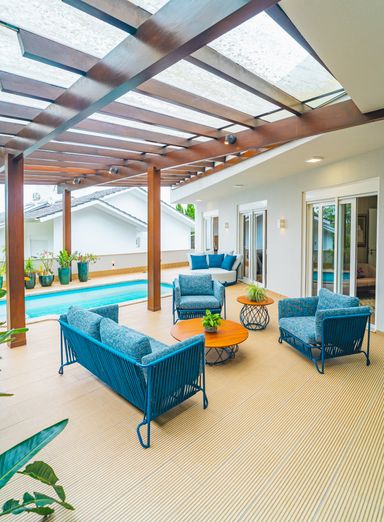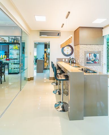 Área Gourmet Integrada com piscina coberta